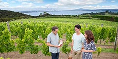 “The island of wine” with over 30 vineyards and wineries, just a 40 minute ferry ride from downtown Auckland.